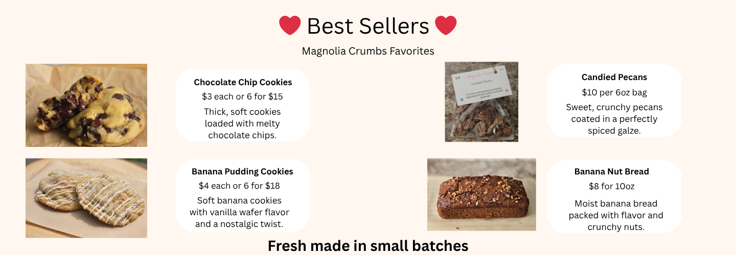 Whether you're celebrating something special, gifting someone sweet, or simply treating yourself, Magnolia Crumbs is here to make every moment a little sweeter.